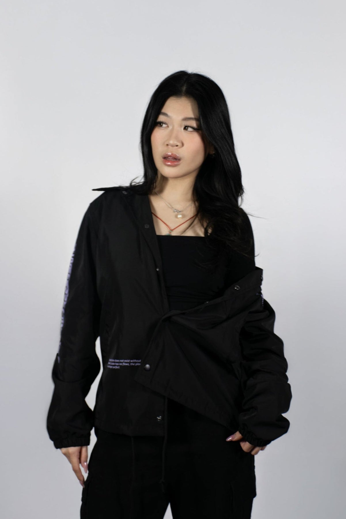 Lightweight yet functional, it features two deep front pockets—perfect for keeping more than just your hands safe. Durable snap buttons provide a secure, reliable closure, while easily adjustable drawstrings offer customizable comfort and a clean, manageable fit.